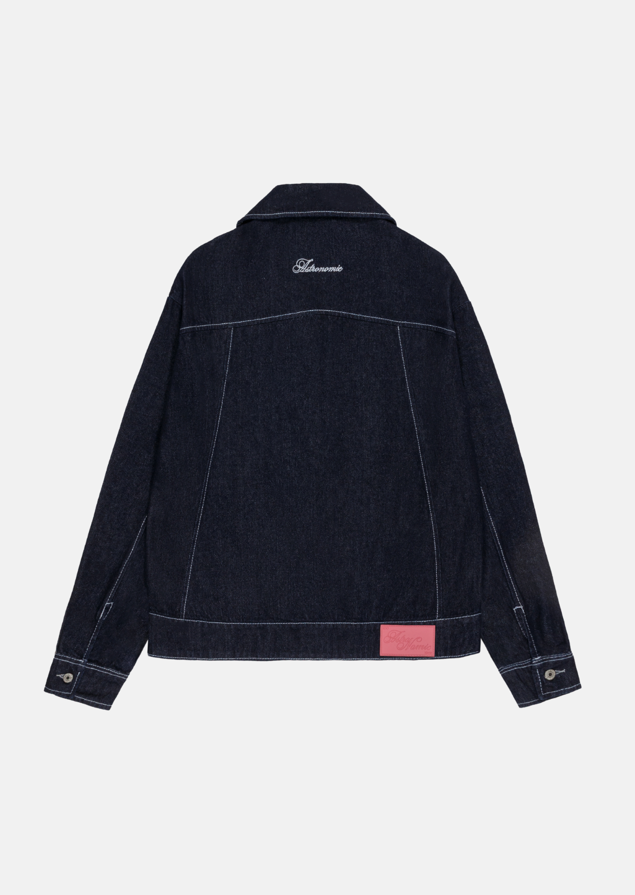 Chaqueta en denim color azul raw con hilo blanco. 100% algodón de alto gramaje. Bordado especial en la espalda y en el frente. Corte elegante y true tu size.